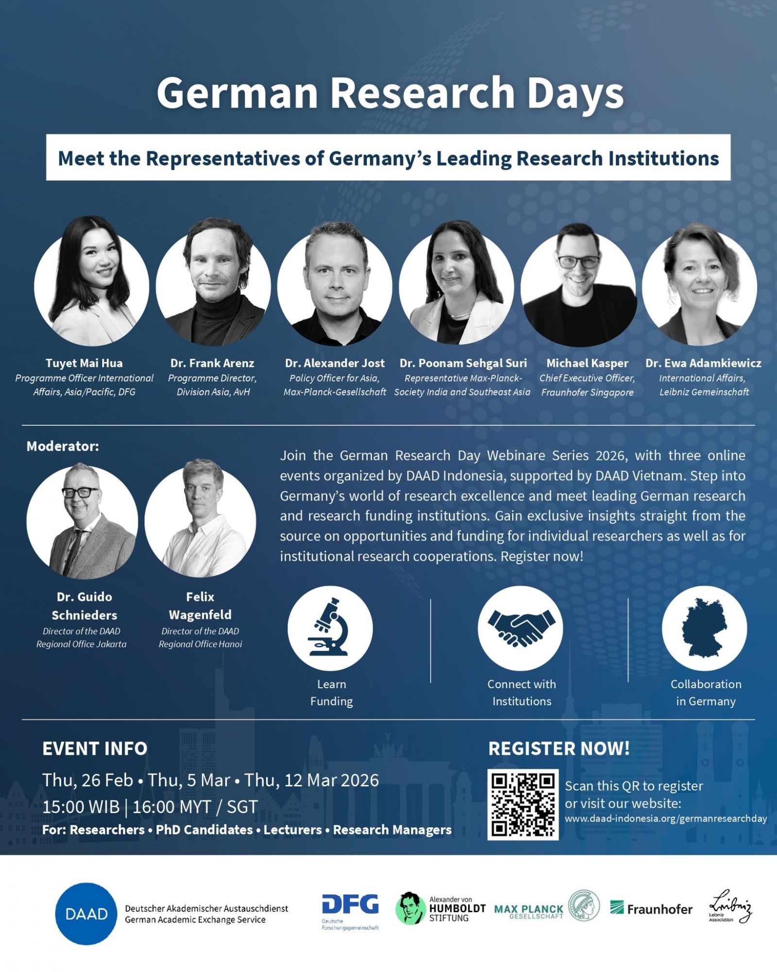 Chương trình tạo điều kiện để người tham dự gặp gỡ trực tiếp đại diện chính thức từ các tổ chức nghiên cứu và tài trợ nghiên cứu uy tín của Đức, bao gồm: